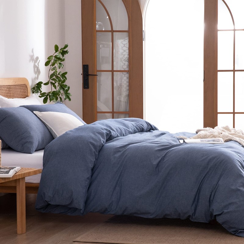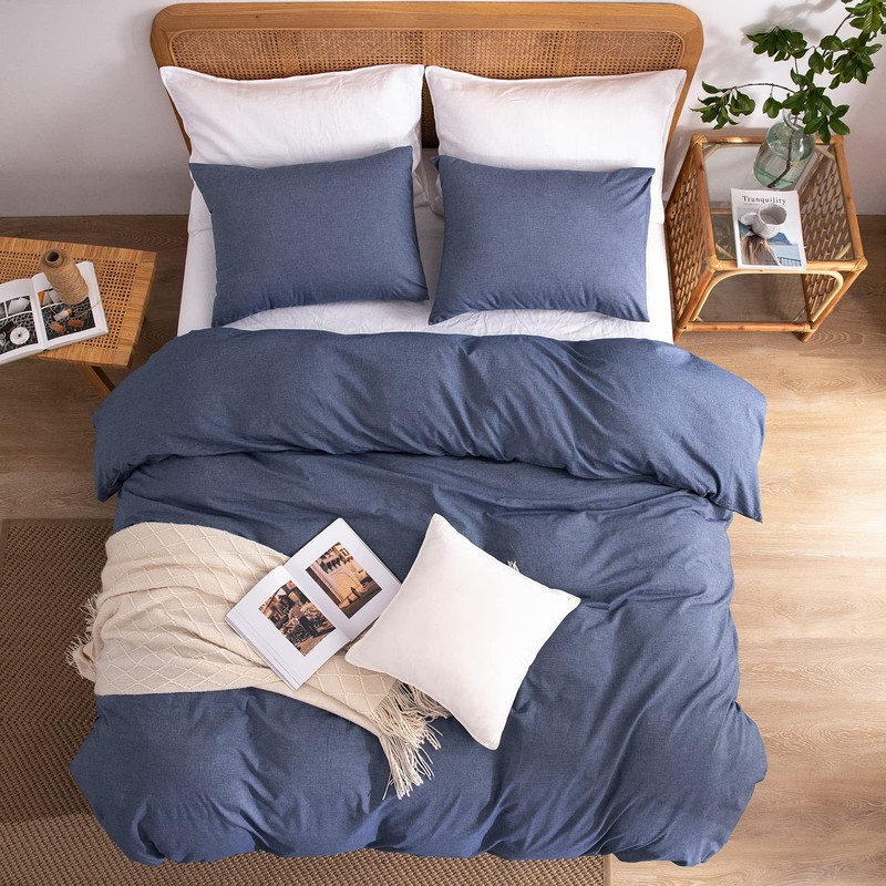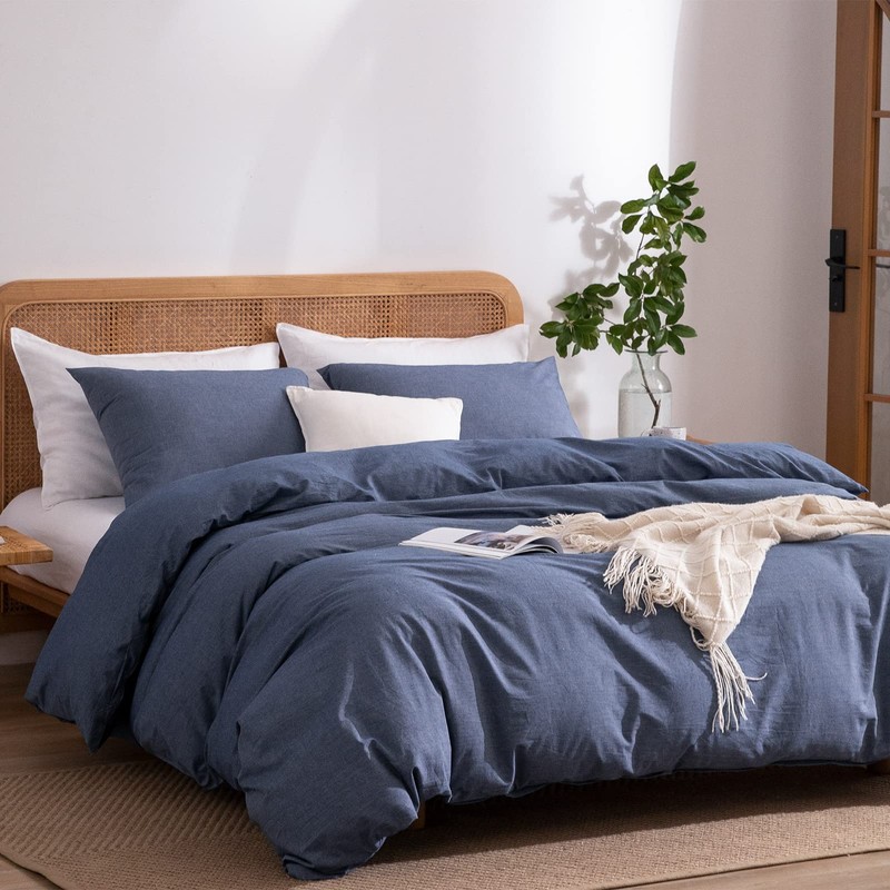 - 【FULL/QUEEN SIZE】Blue chambray duvet cover measures 90 by 90 inch including 2 pillow cases 20 by 26 inch (Comforter and fitted sheet are not included)