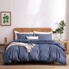 Blue Duvet Cover Queen, 100% Washed Cotton Linen Like Textured Solid Color Casual Modern Style Blue Bedding Set, with Zipper Closure, Luxury Soft Relaxed Feel Natural Wrinkled Comfy (3pcs, Queen)