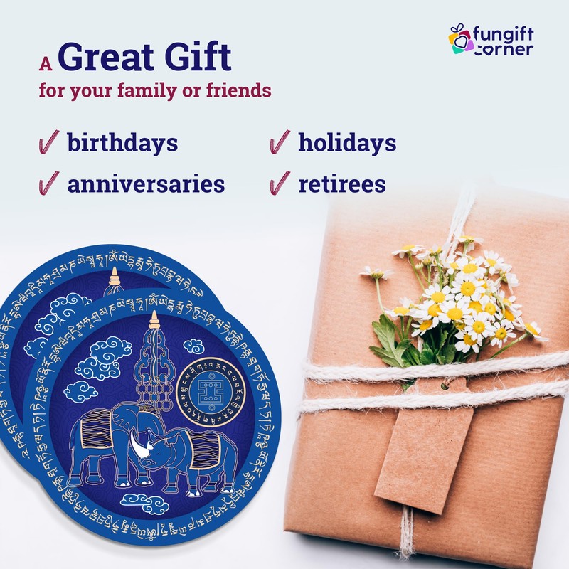 This is a beautiful set of stickers that can be applied on any surface like a window, mirror, laptop, etc. It features the image of Blue Elephant and Rhino, an ideal feng shui symbol of protection against robbery, money and investment losses & betrayals.