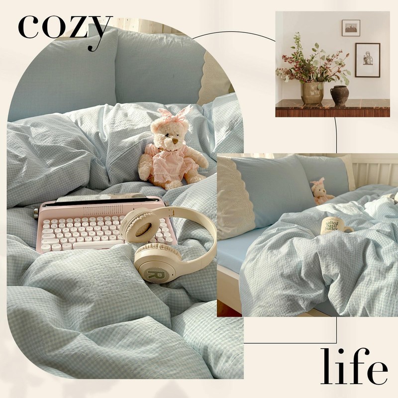 - 【Timeless Gingham Pattern Unique Lace Design】- Modern style blue gingham plaid grid checkered duvet cover set, exquisite princess lace design makes this gingham bedding set more romantic and unique, adding a vintage elegance and nice sophistication to your room decor. Suitable for kids, teens, babies, toddlers, students, girls, boys, adults etc. Also, it's a Great Gift idea for Housewarming, Christmas, New Year, Wedding, Birthday, Holidays and Anniversary.