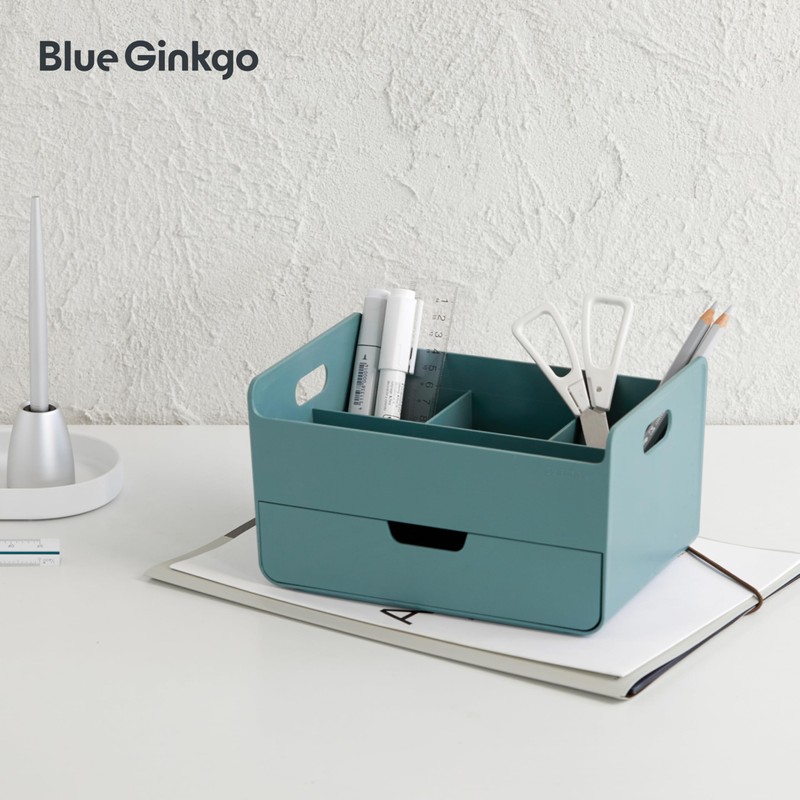 BLUE GINKGO Portable Desk Organizer – Compact 3 Compartment, Half-drawer Storage – Pen Holder, Stationery Desktop Organizer for Office, Makeup, Crafts (Made in Korea, Green)