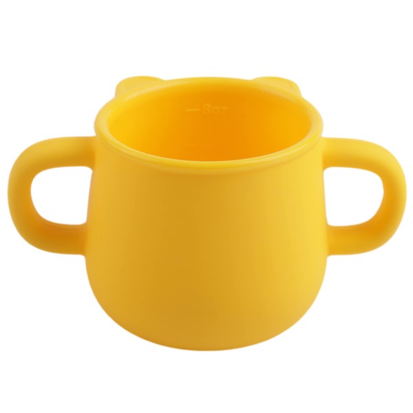 BLUE GINKGO Silicone Toddler Cups - Open Cup for Baby with Handles | Made in Korea | 8oz Training Open Cups for Toddlers 1-3 (Yellow)