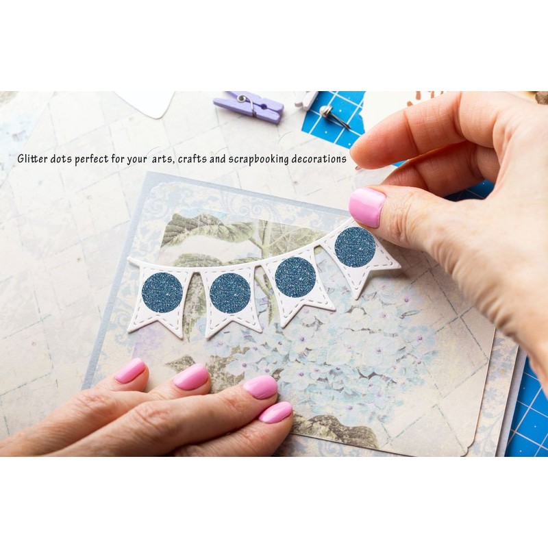 Sparkling decorative colored stickers, perfect for your arts and crafts projects. The round (1 inch) glitter sticker sticks firmly to wedding invitations, envelopes, scrapbooks, notebooks, foam boards, papers and letters