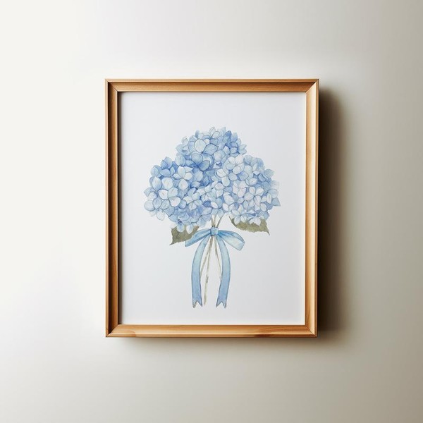 Blue Hydrangea With Blue Bow Poster, Soft Blue Floral Nursery Print - Size: 11x17