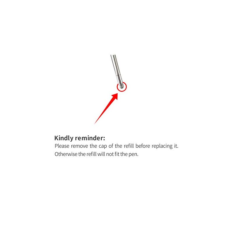 Please completely remove the wax tip cover on the new refill before inserting the new refill into the pen’s barrel. Otherwise, the remaining wax tip cover may lead to fitting and writing issues.