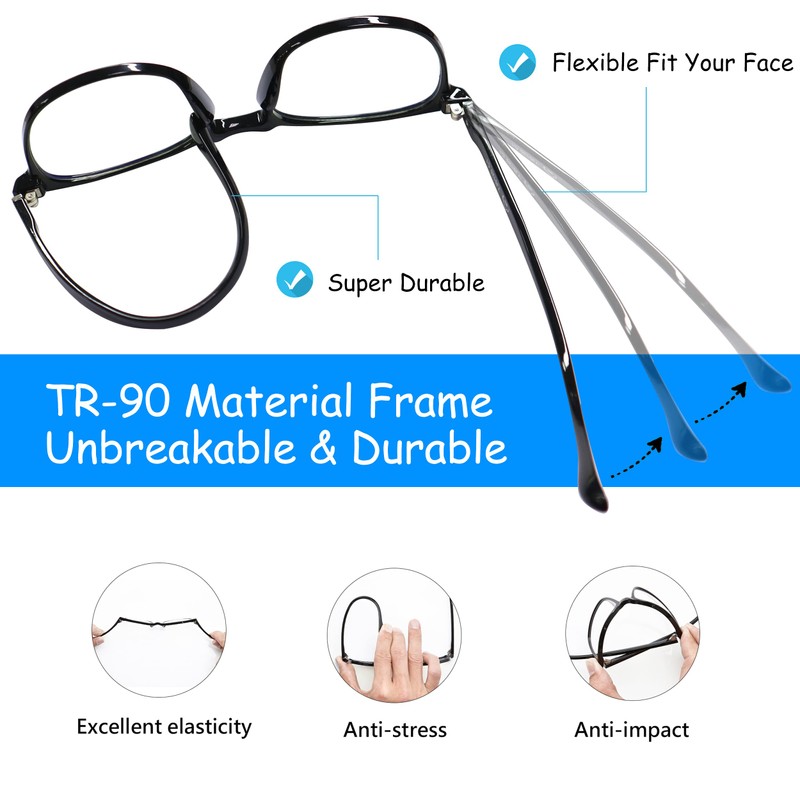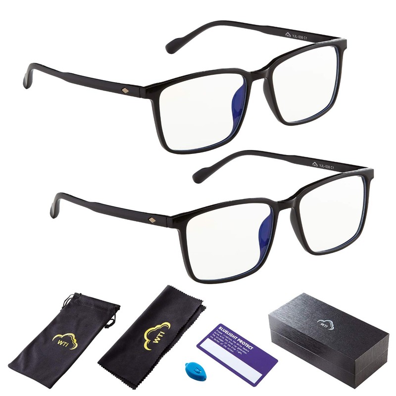 Blue Light Blocking Glasses for TV Phone Computer Gaming Screen Men and Women, TR90 Frame, Anti Eyestrain UV, 2 Pack