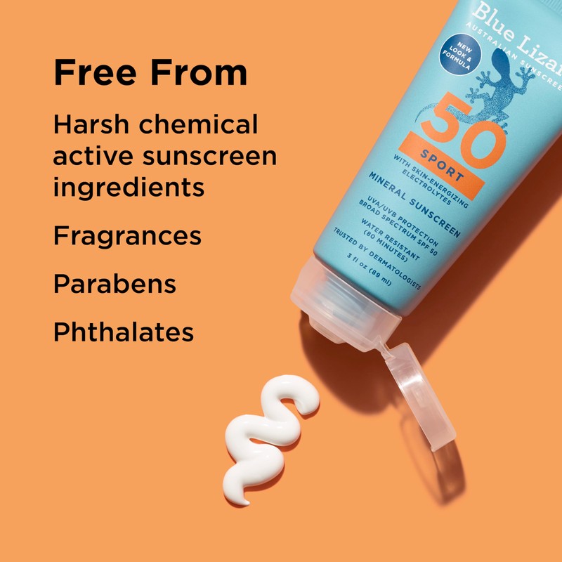 Blue Lizard Sport Mineral SPF 50 Lotion, Ideal for Athletes, 100% Mineral Sunscreen Actives, Fragrance-Free, Paraben-Free, Vegan, 3.0 fl oz