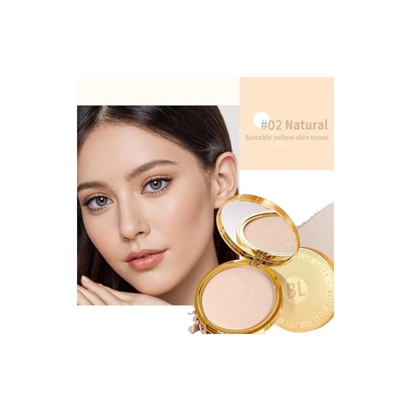 BLUE LOVE Pressed Powder Foundation - Lightweight, Oil-Free Compact Makeup, Medium to Full Coverage, Matte Finish, Shine Control, Long Lasting - For All Skin Types (Natural)