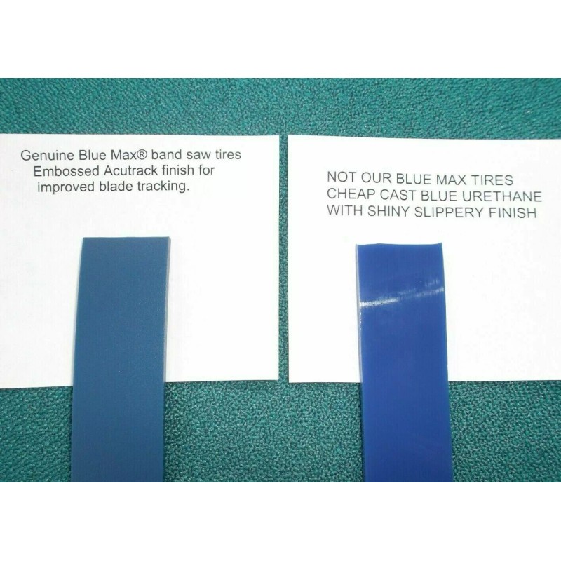 Blue Max tires will out perform and outlast the standard conveyor belt orange urethane everybody used in the past to make band saw tires.