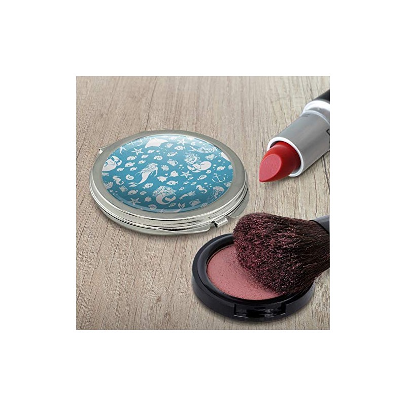 Blue Mermaid Pattern with Seashells Fish Manta Rays Ocean Compact Travel Purse Handbag Makeup Mirror