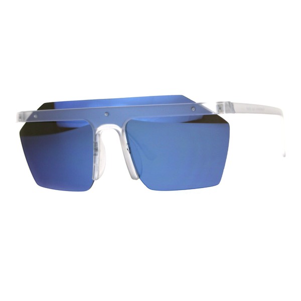 Blue Mirrored Lens Sunglasses Minimal Flat Top Rim Frost Square Exposed Lens