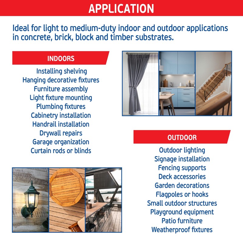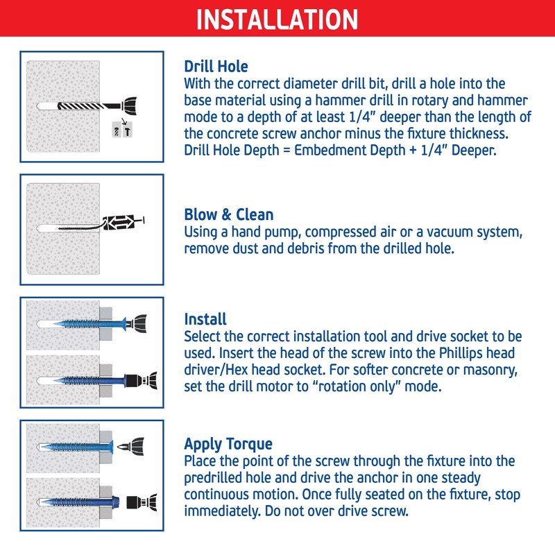 - [HIGH QUALITY] A High and Low Thread Design along with Wide Serrated Threads provides a Faster Drilling Speed allowing the Screw Anchor to Quickly Penetrate any Base Material