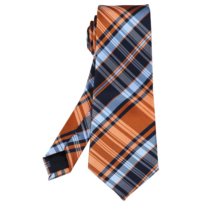 Blue Navy Orange Norrow Tartan Check Plaid Ties Elegant Autumn Neckties for Men Boy Kids