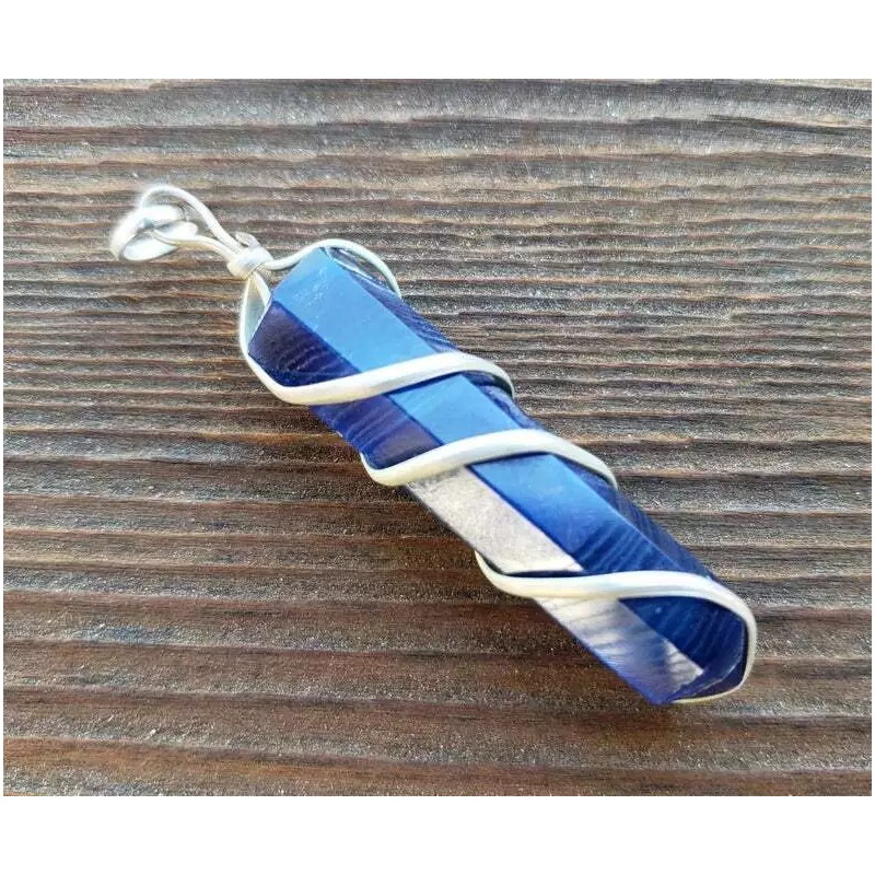 BLUE ONYX SPIRAL WIRE WRAPPED PENCIL POINT PENDANT GEMSTONE