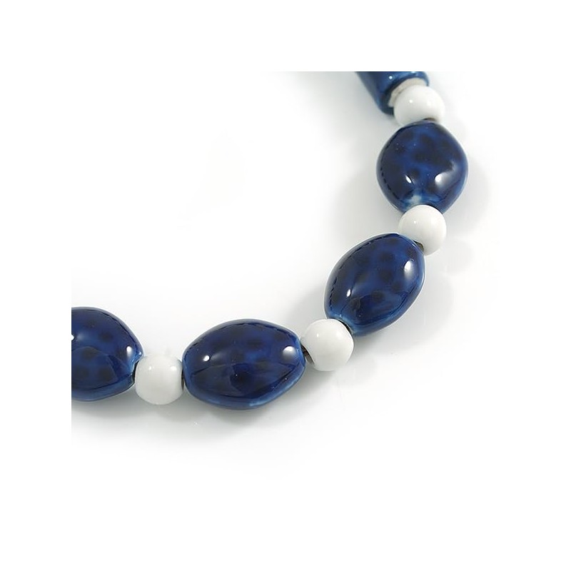 Make a beautiful addition to any outfit with this fabulous Blue Oval and White Round Ceramic Bead with Brown Silk Cords Necklace. The necklace made of blue oval and white round ceramic/ clay beads and decorated with brown silk cords. The necklace measures about: 50cm (Min Length), can be adjusted up to 70cm (Max Length). And an easy-to-wear, no fastening so can be slipped over the head.
