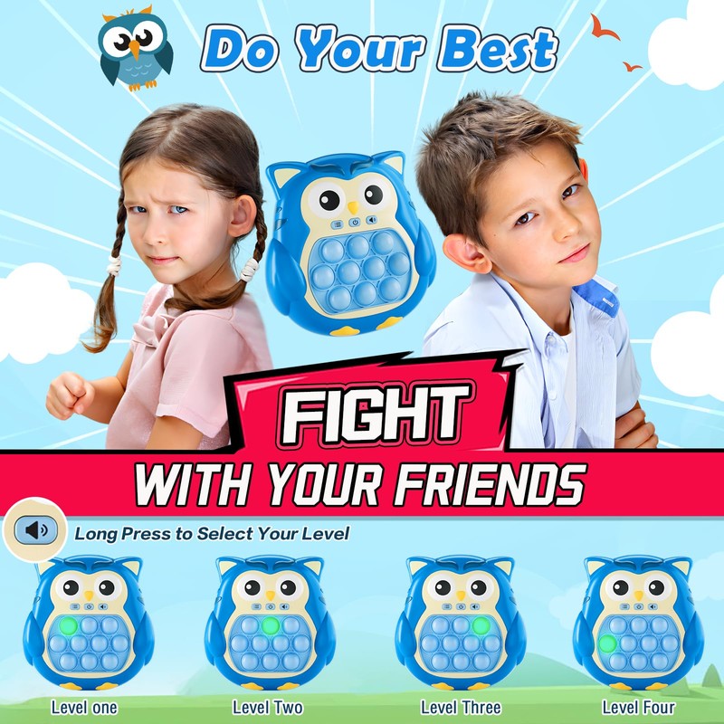 Blue Owl Sensory Pop Fidget Toys for Kids 3-12,Handheld Game for Kids,Light Up Fidget Toy,Travel Toys for 3 4 5 6 7 8 9 Year Old,Quick Push Pop Game Christmas Birthday Gifts for Boys and Girls
