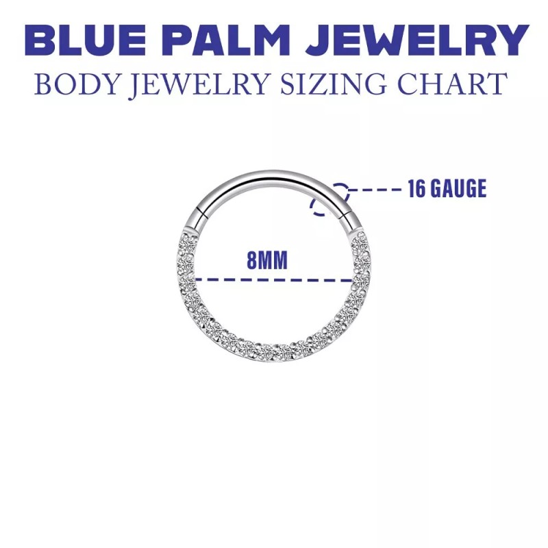 Blue Palm Jewelry 1- 16 GA 5/16" Front Facing CZ Septum Nose Ear Titanium Hinged Helix Tragus C311