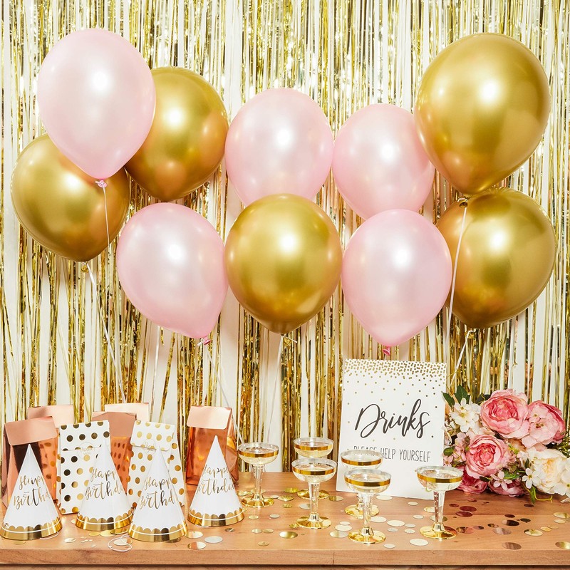 Includes 100 metallic light pink latex balloons and a roll of white hanging ribbon measuring 32.8 feet. Perfect for Birthdays, weddings, bachelorette parties, bridal showers, anniversaries, baby showers, holidays, etc. Dimensions: 12 Inches