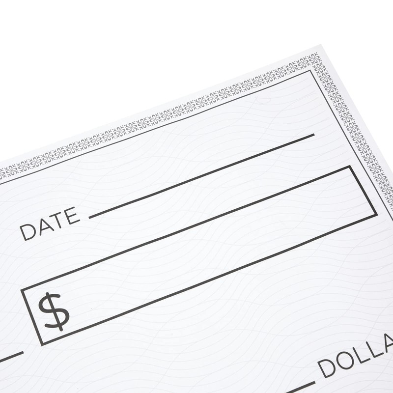 • Plenty of Writing Space: Each large check measures 30 x 16 inches with blank fields to fill in the date, pay to the order of, dollar amount, written dollar amount, and what the check is for