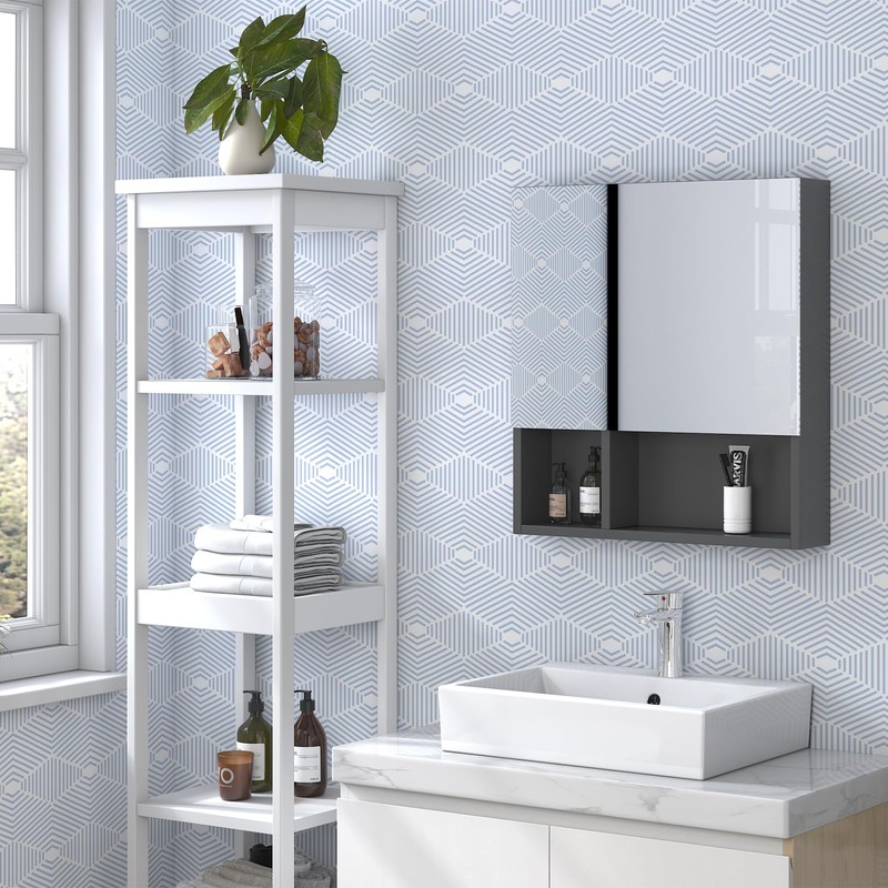 - Various Uses: Our blue striped wallpaper is recommended to be pasted on a smooth and flat surface. Surface dirt or texture may affect the adhesion of the geometric wallpaper. It can be pasted on bathroom, bedroom, living room, kitchen tailboards, cabinets, drawers, etc