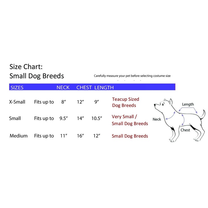 • Pet Medium: Neck 11", Chest 16", Length 12"