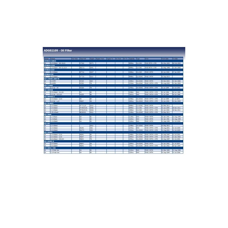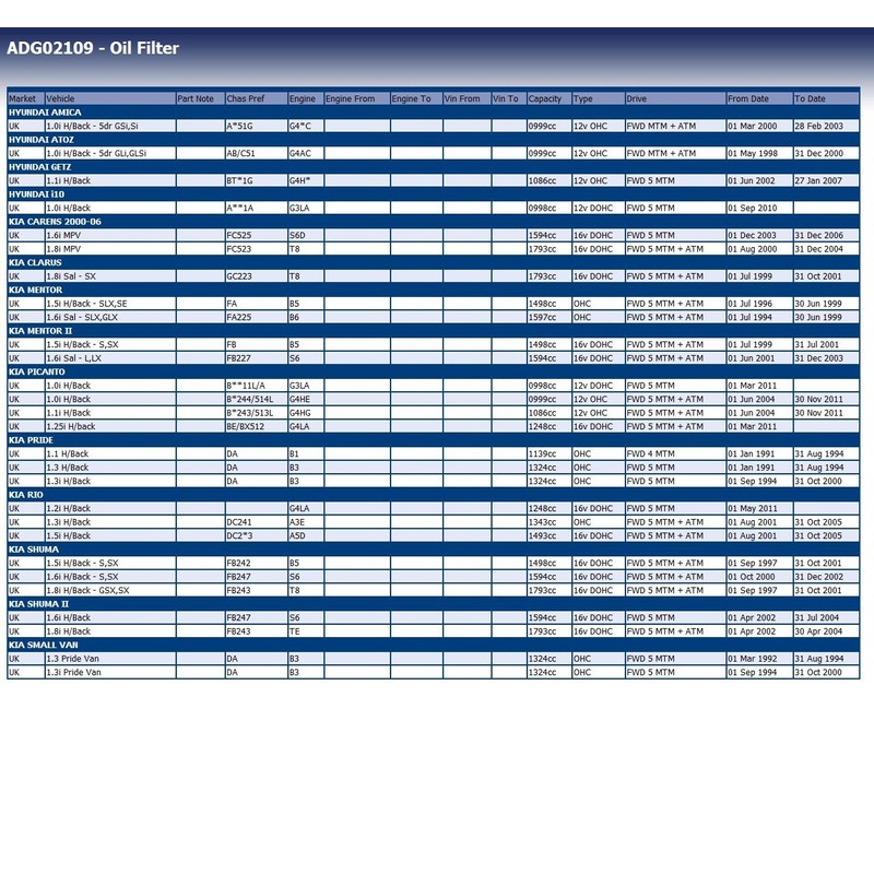 • among others suitable for: KIA: Carens I, Carens II, Cee’d, Clarus, Credos, Mentor I, Mentor II, Picanto I, Picanto II, Pride I, Proceed, Rio I, Rio II, Rio III, Sephia I, Shuma I; Hyundai: Accent IV, Amica, Atos, Atoz, Click, Getz, i10 I, i10 II, i20 I, i20 II