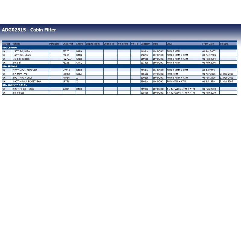 • among others suitable for: KIA: Carnival III, Cerato, Sedona, Sorento II, Sorento II 4x4
