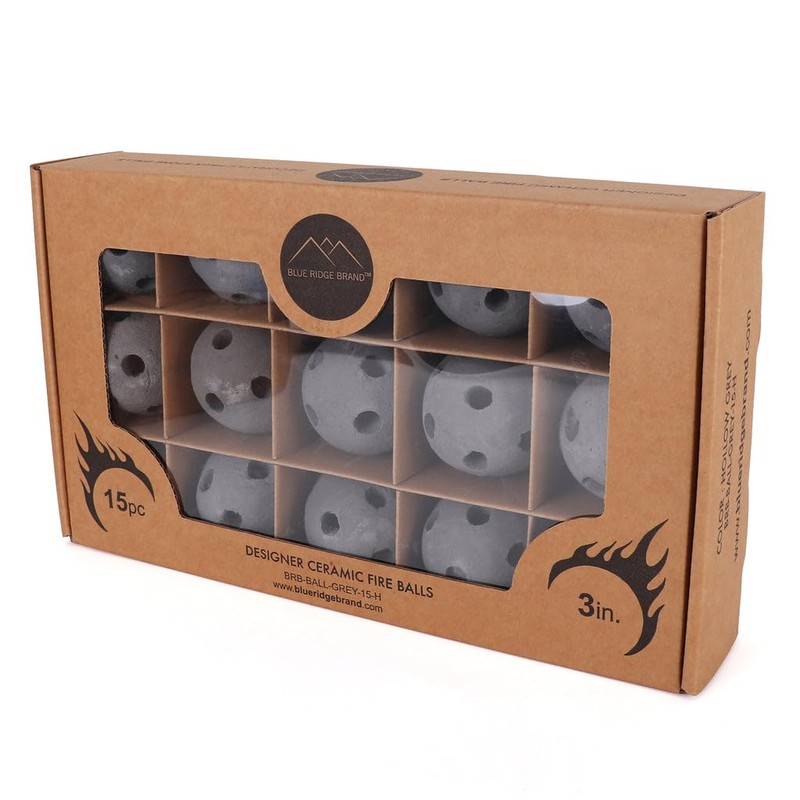 - BLUE RIDGE BRAND CERAMIC FIRE BALLS - Blue Ridge Brand fire balls are made from unfinished ceramic and are intended to be used as a decorative accent in gas or propane fire pits and fireplaces.