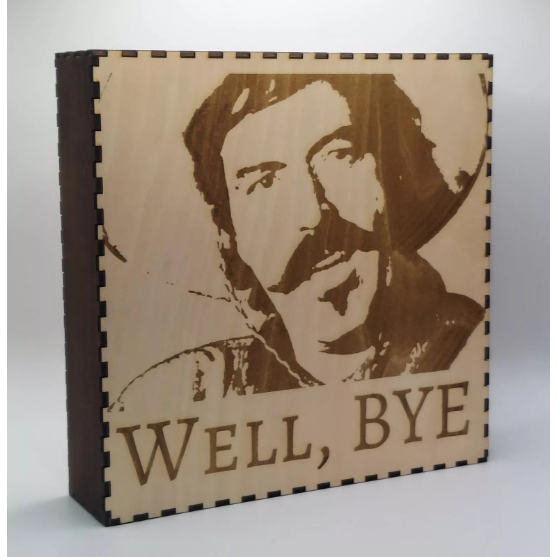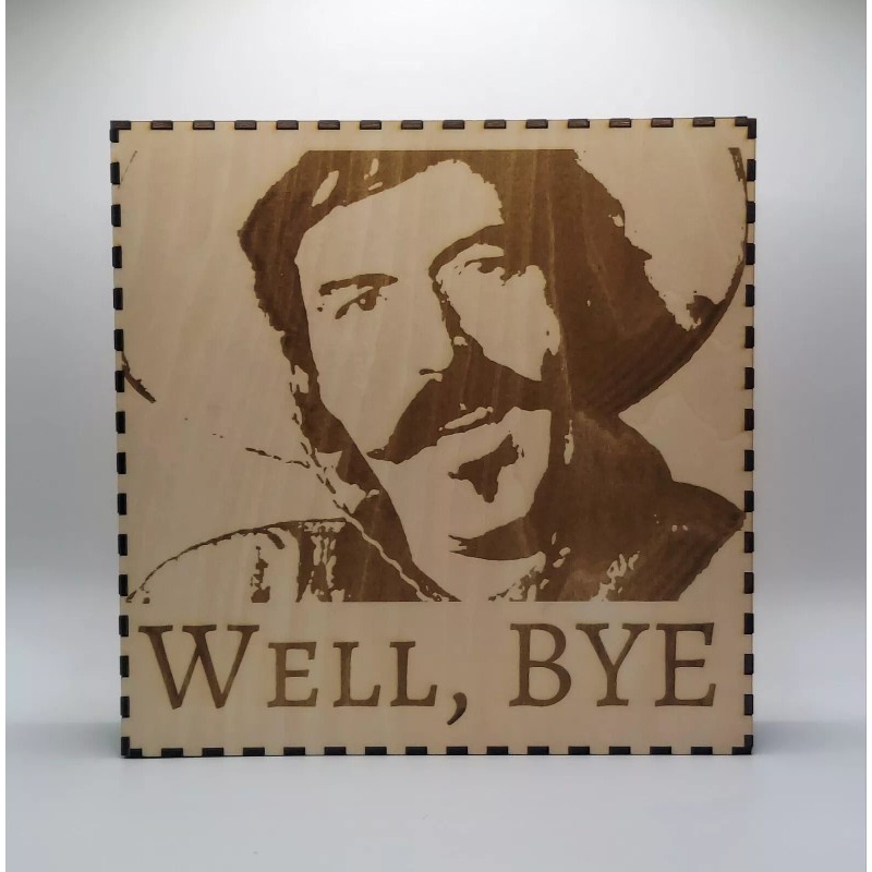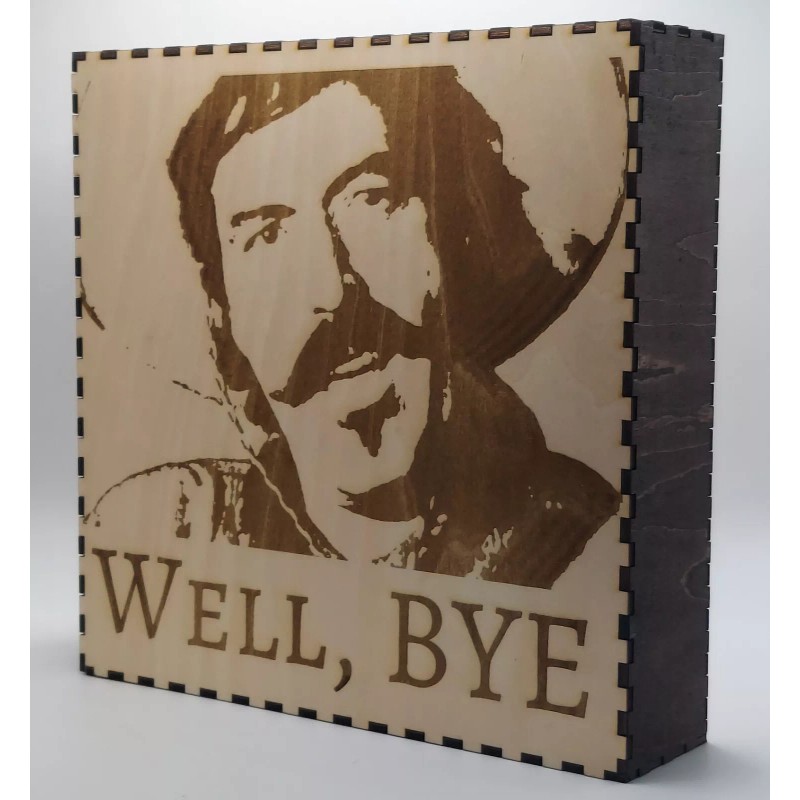 Tombstone Curly Bill Shelf Sign - We'll, BYE - 8"x8"x2"