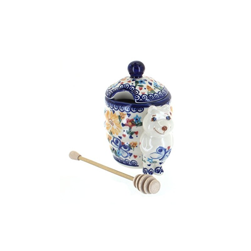 Blue Rose Polish Pottery Butterfly Honey Pot