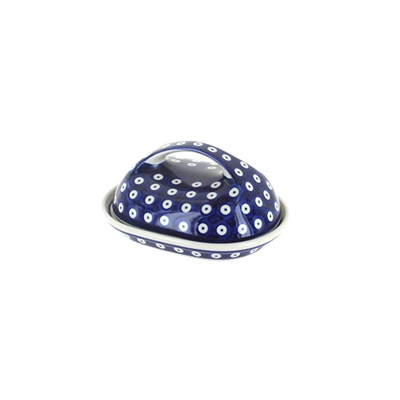 Blue Rose Polish Pottery Dots Butter Dish with Handle