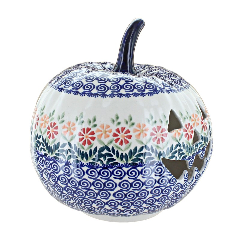 Blue Rose Polish Pottery Garden Bouquet Large Pumpkin Luminary