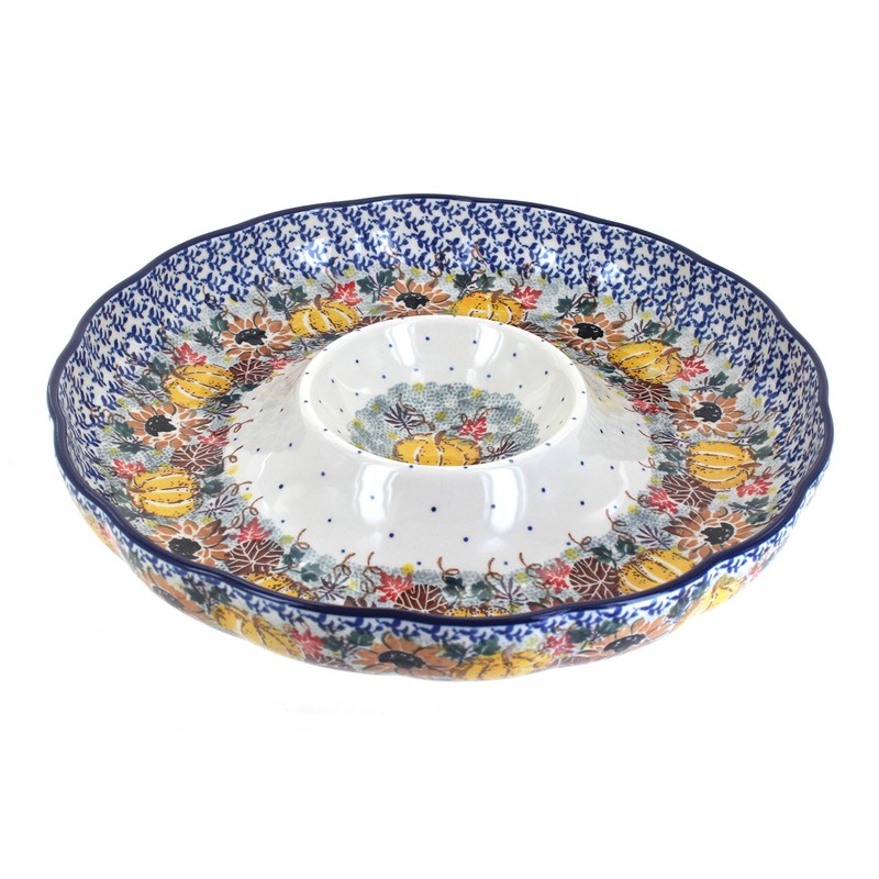 Blue Rose Polish Pottery Harvest Bounty Chip & Dip