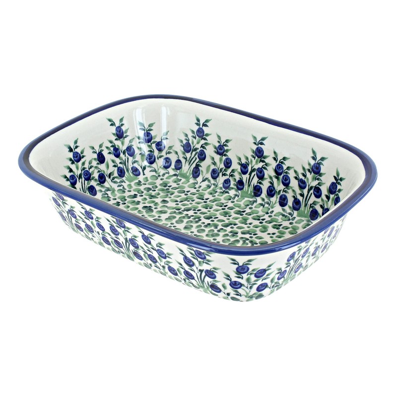 Blue Rose Polish Pottery Porcelain Vine Loaf Baker