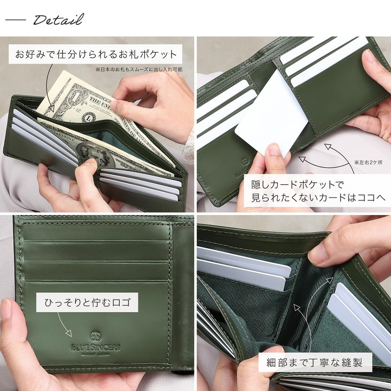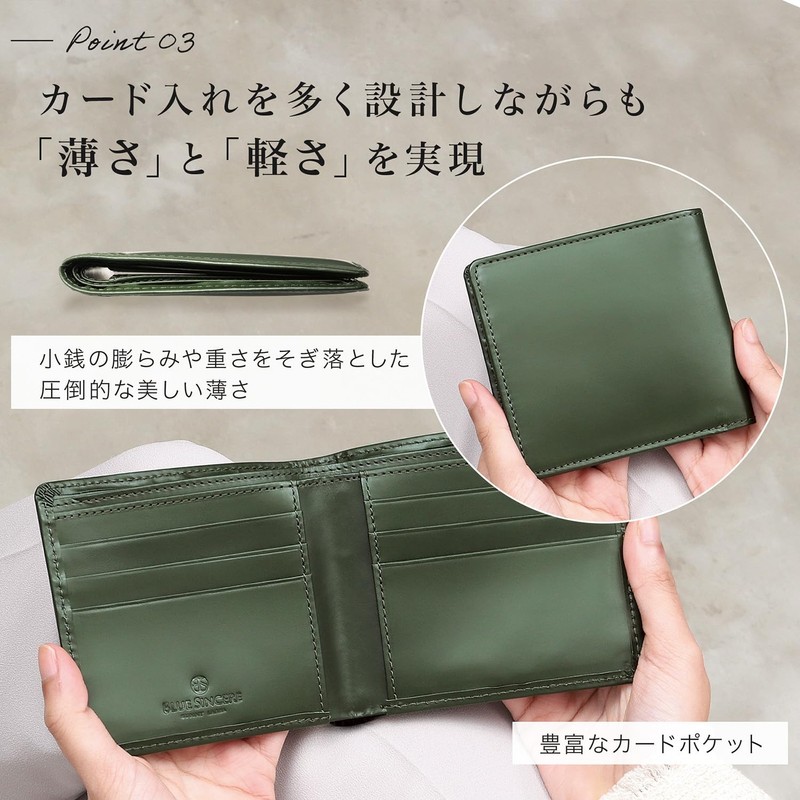 - (Card Wallet Specializing in Cards and Billfolds) This smart wallet has been optimized for the cashless era and can store 12 cards and bills. Luxury design with genuine leather for every wallet. Uses Italian leather that increases luster when you use it, so you can use it for a long time
