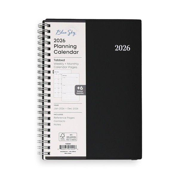Blue Sky 2026 Weekly and Monthly Planner Calendar, Includes January 2026 - December 2026, 5" x 8", Flexible Cover, Wirebound, Laminated Tabs, Enterprise