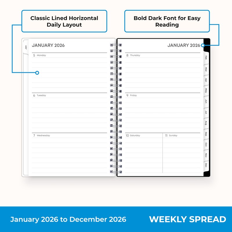 • [BUILT TO LAST] Designed with a flexible pocket cover and premium pages that endure daily use while maintaining a sleek, professional look. Printed on quality FSC-certified paper with convenient laminated tabs that are durable enough to handle daily use throughout the year