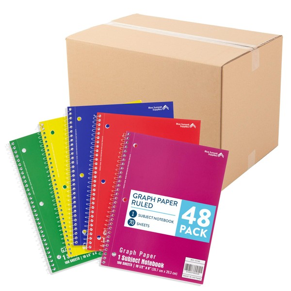 - Durable Covers in Assorted Colors – Each graph paper spiral notebook in the 48 pack features a standard assorted color cover, great for sorting subjects and adding variety to school or office supplies.