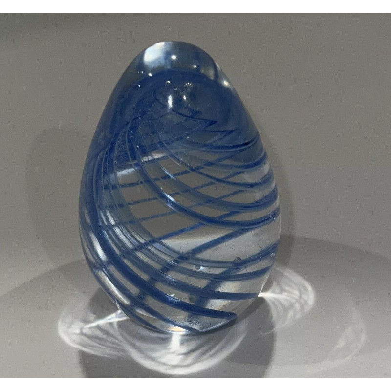 Blue Swirled 2 1/2" Egg Art Glass Bubble Design Paperweight