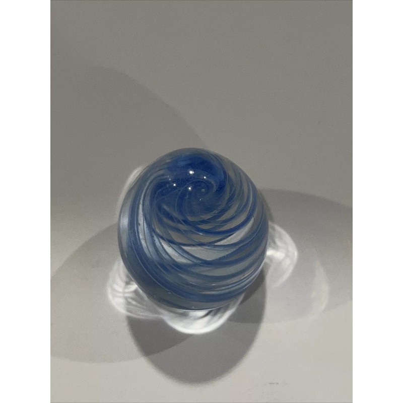 Blue Swirled 2 1/2" Egg Art Glass Bubble Design Paperweight.
