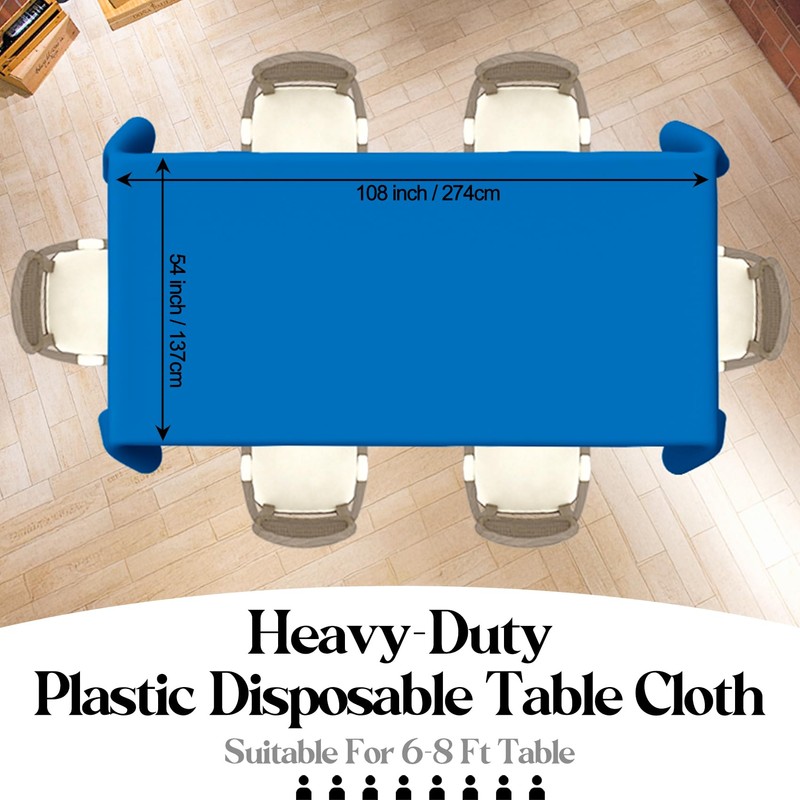 - ECONOMICAL & Versatile: Our 6 Pack premium heavy-duty plastic table cloths are available in multiple colors, providing a friendly way for your party needs. You can choose different colors of the party decor tablecloth to meet various party themes, like dining, weddings, birthday, graduation parties, banquets, events, picnics, campings, indoor and outdoor use