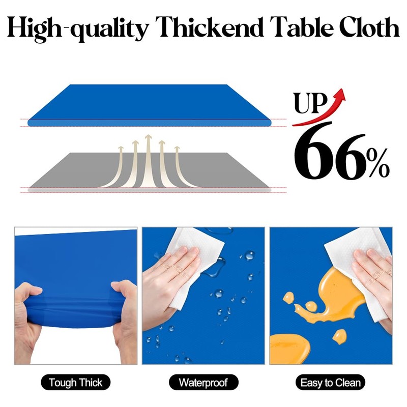 - Premium & Thick: Our tablecloths rectangular are crafted from superior, thickened PEVA plastic, offering exceptional durability and resistance to tears, ensuring long-lasting use. These heavy-duty party tablecloths disposable are waterproof and stain-resistant, effectively protecting your table from oil, spills, and stains