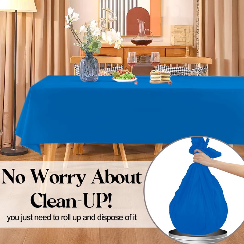- Effortless Clean-Up: These plastic table covers add great convenience to your life. Portable and lightweight, You can just dispose of used disposable table protectors after party, effectively eliminating the risk of improper cleaning, making party clean easier, saves you valuable time and effort!