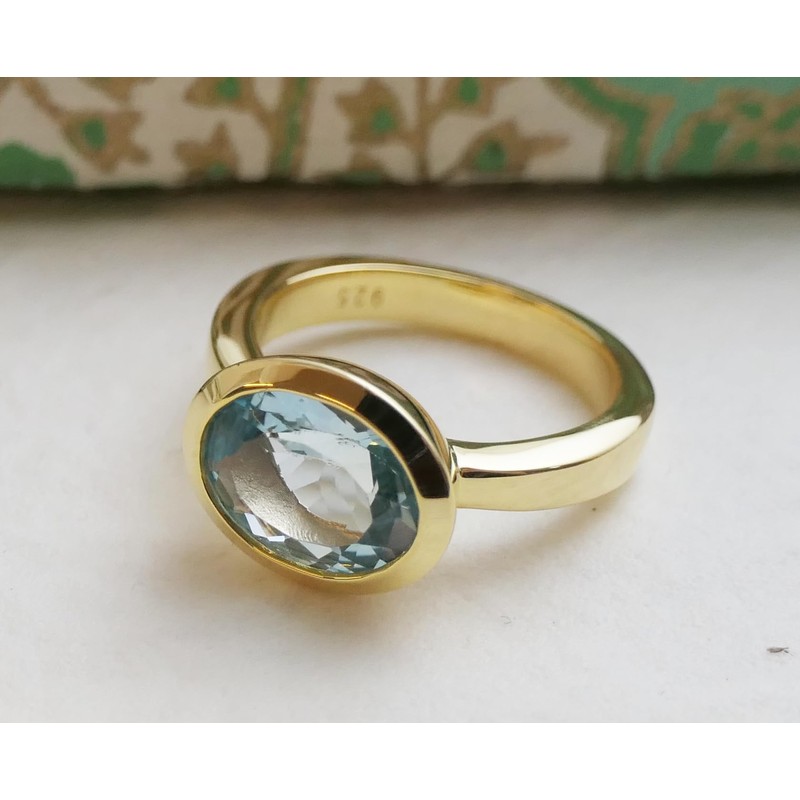 Blue Topaz Gold-Plated Sterling Silver Ring US Size 7 / Diameter 17.3