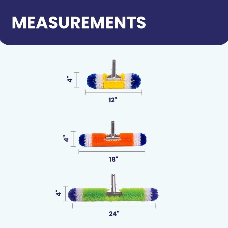 Blue Torrent Pool Brush, 360 Degree Bristles, 3 Pack with 12 Inch, 18 Inch, and 24 Inch Brushes (3 Pack)