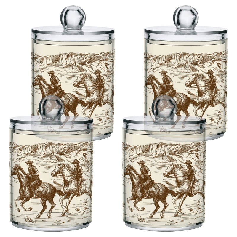 Blueangle 4PCS American West Cowboy Qtip Holder Dispenser with Lids - Apothecary Jar Containers for Vanity Organizer Storage - Plastic Food Storage Canisters