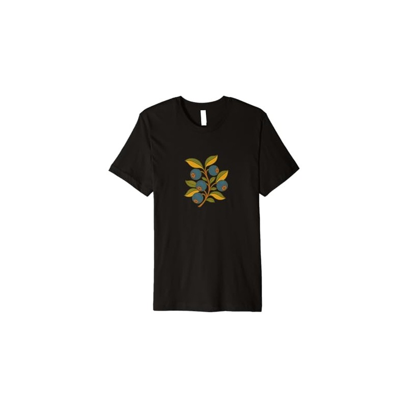 Blueberry Branch Botanical Nature Art Summer Fruit Premium T-Shirt