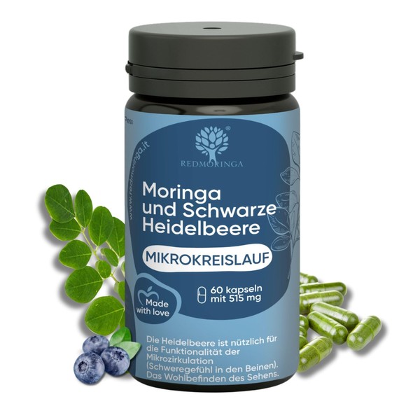 Blueberry Extract & Moringa Capsules for Leg Circulation - High Dose, Supports Microcirculation and Vein Health, 60 Vegan Capsules, 100% Natural RedMoringa