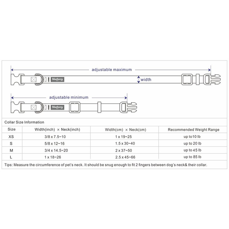 - Neck 12"-16", Width 5/8", Size Small; The collar does not stretch itself, please make sure leave ONLY 2 fingers between collar and dog neck. A properly fitting collar and harness won't leave any room for your dog to chew