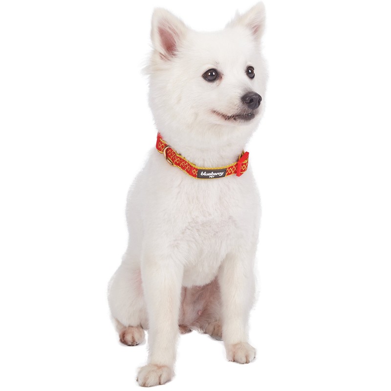 Blueberry Pet 4 Patterns Gold Metallic Thread Zigzag True Red Adjustable Dog ...